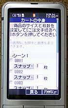携帯では、パソコン版のように画像を見ながらカートに入れるという方法をとっていません。「閲覧は閲覧」、「注文は注文」というスタンスです。